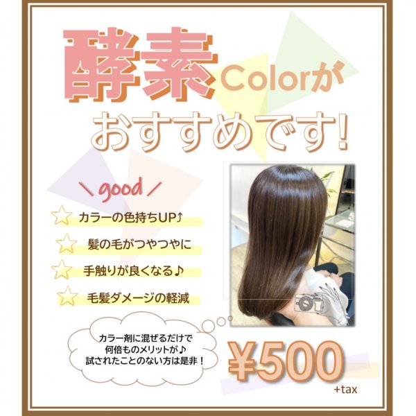 酵素カラーをされたことのある方も、初めての方も是非期間中はプラスしてみて下さい^^