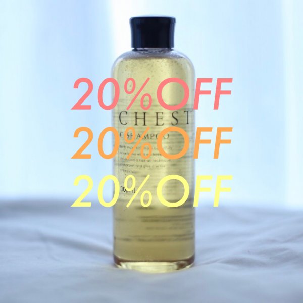 ご愛用者様も多いCHESTオリジナルCシャンプーが期間限定感謝セールで20%OFFに☆